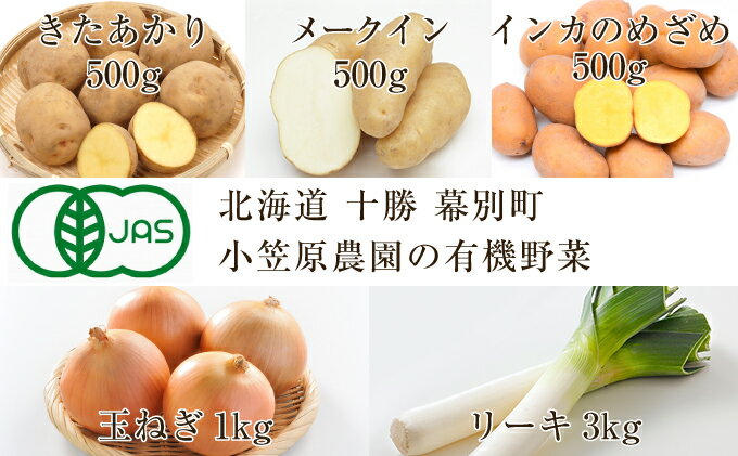 【ふるさと納税】小笠原農園の野菜5種詰合せ(きたあかり500g・メークイン500g・インカのめざめ500g・玉ねぎ1kg・リーキ2kg)【北海道十勝幕別】 【野菜・じゃがいも・ねぎ・葱・セット・詰め合わせ】 お届け:2020年9月下旬〜12月下旬