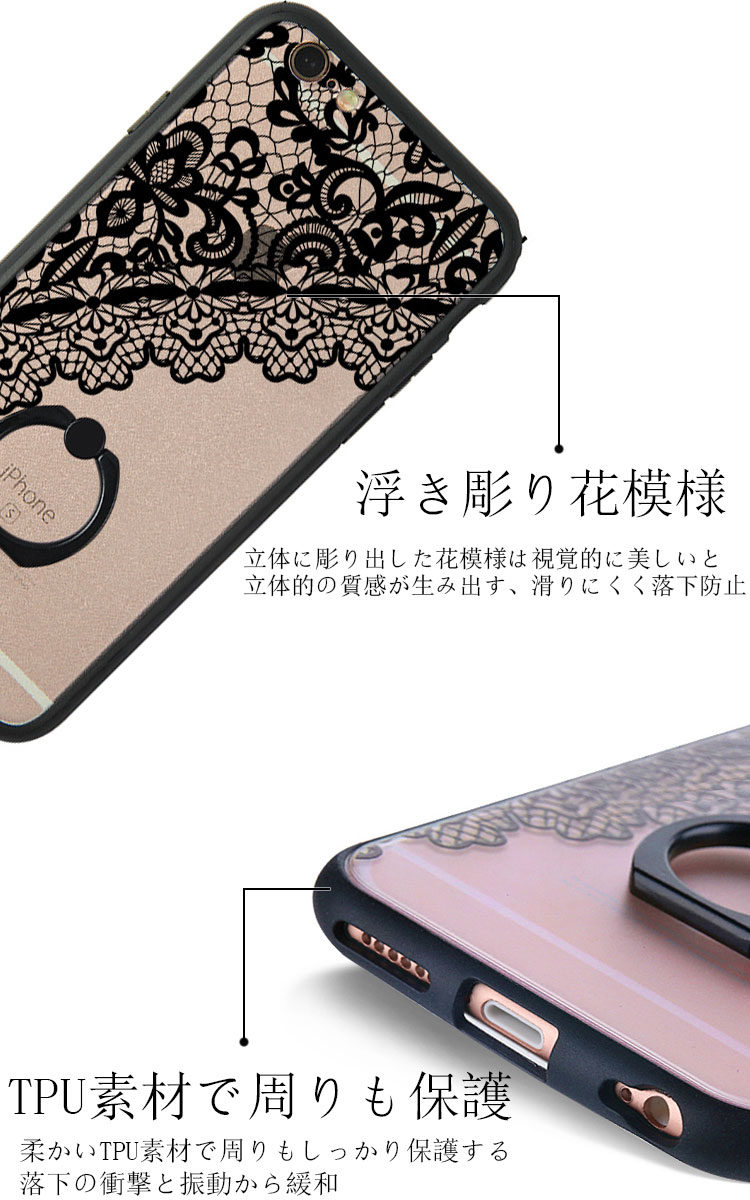 【商品キーワード】iphone8 X 8plus iPhone7 plus ケース iphone7ケース iphone6 plus ケース iPhone6ケース リングホルダー TPUケース ストラップ付き ホールドリング iphone用カバー スマホケース クリアケース PCケース カバー レース柄 ドレス 花柄製品仕様 対応機種iPhone6/6s/6Plus/6sPlus 重量約25g/30g カラーブラック、ホワイト、ピンク サイズ薄さ約1.2mm 素材TPU&PC 備考※TPU素材の特性上長期間用しますと、手脂、紫外線等により変色する事がございますので、返品保証対象外です。